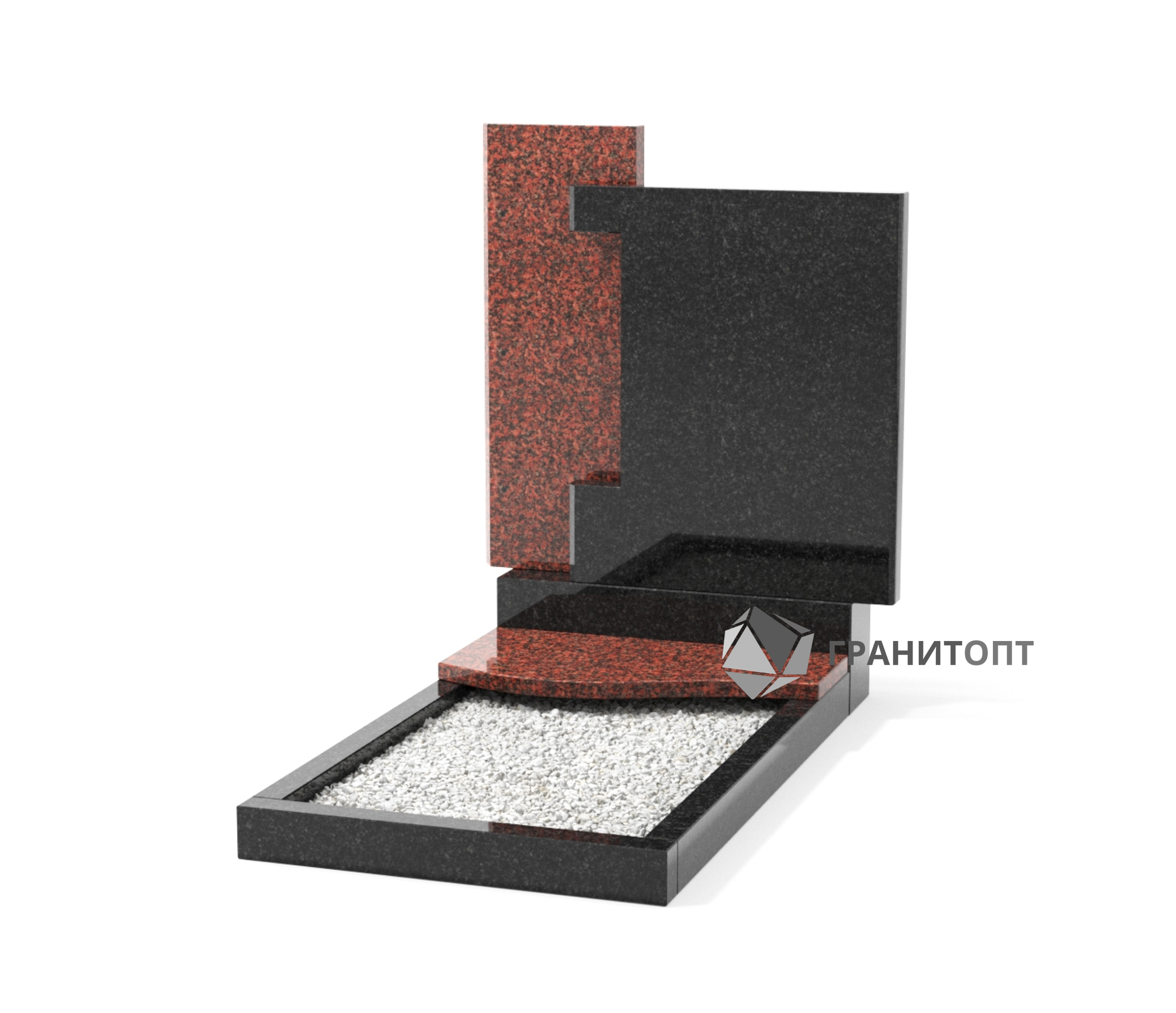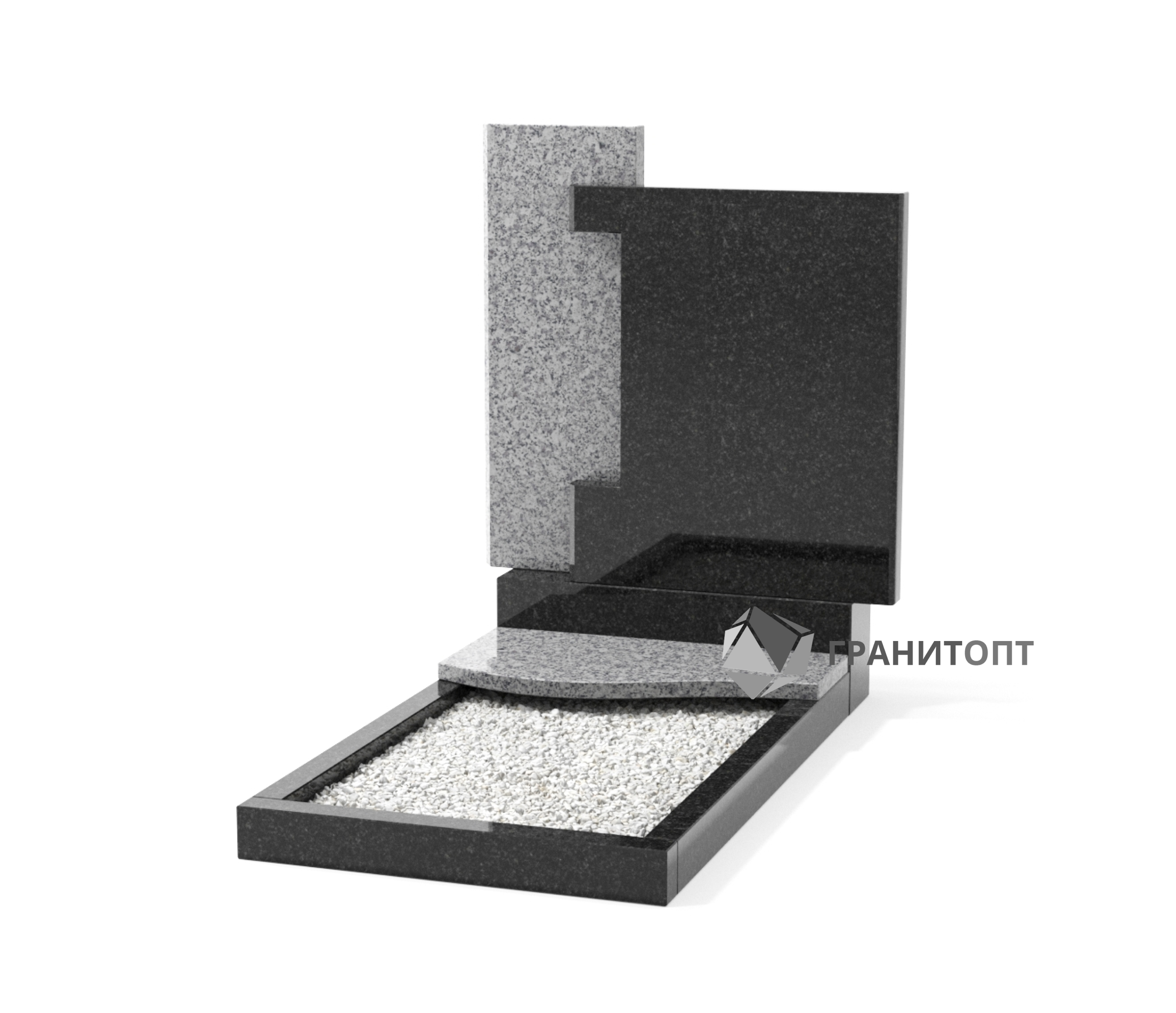 Оригинальный памятник собранный из гранита двух цветов. Памятник идеально подойдет как для мужской так и для женской могилы. В комплект входит цветник, который можно засыпать цветным щебнем, галькой или застелить искусственным газоном. Опыт наших мастеров и современное оборудование позволят Вам выбрать любой понравившийся вариант гравировки, а наш высокий ассортимент позволит вам создать индивидуальное благоустройство захоронения. В стоимость изделия не включены расходы по художественному оформлению, доставке на кладбище и установке на участок с захоронением