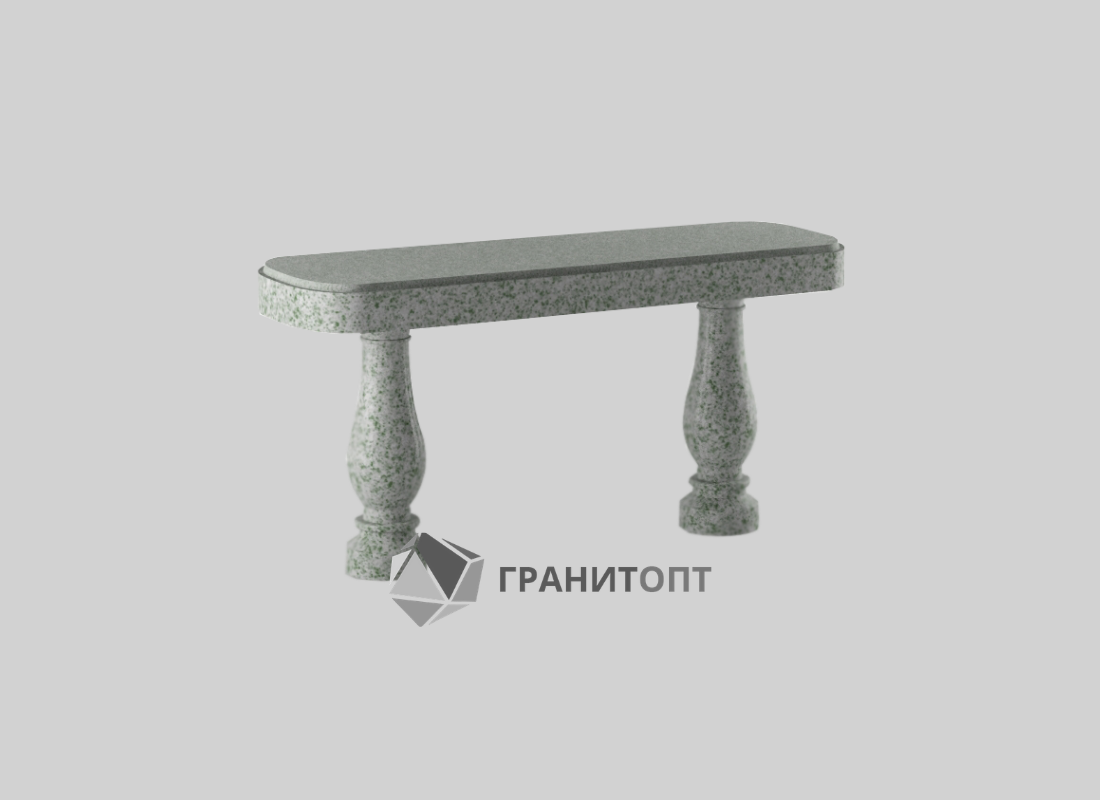 Скамья из светло-серого мансуровского гранита с фигурными ножками.