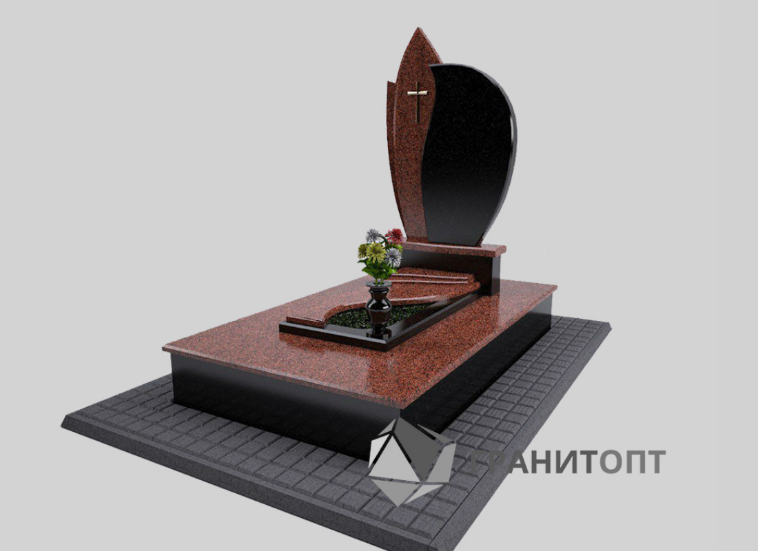 Изящный резной памятник с лаконичным сочетанием гранита двух цветов. Декоративная окраска камня Балтик Браун украшает мемориальный комплекс.