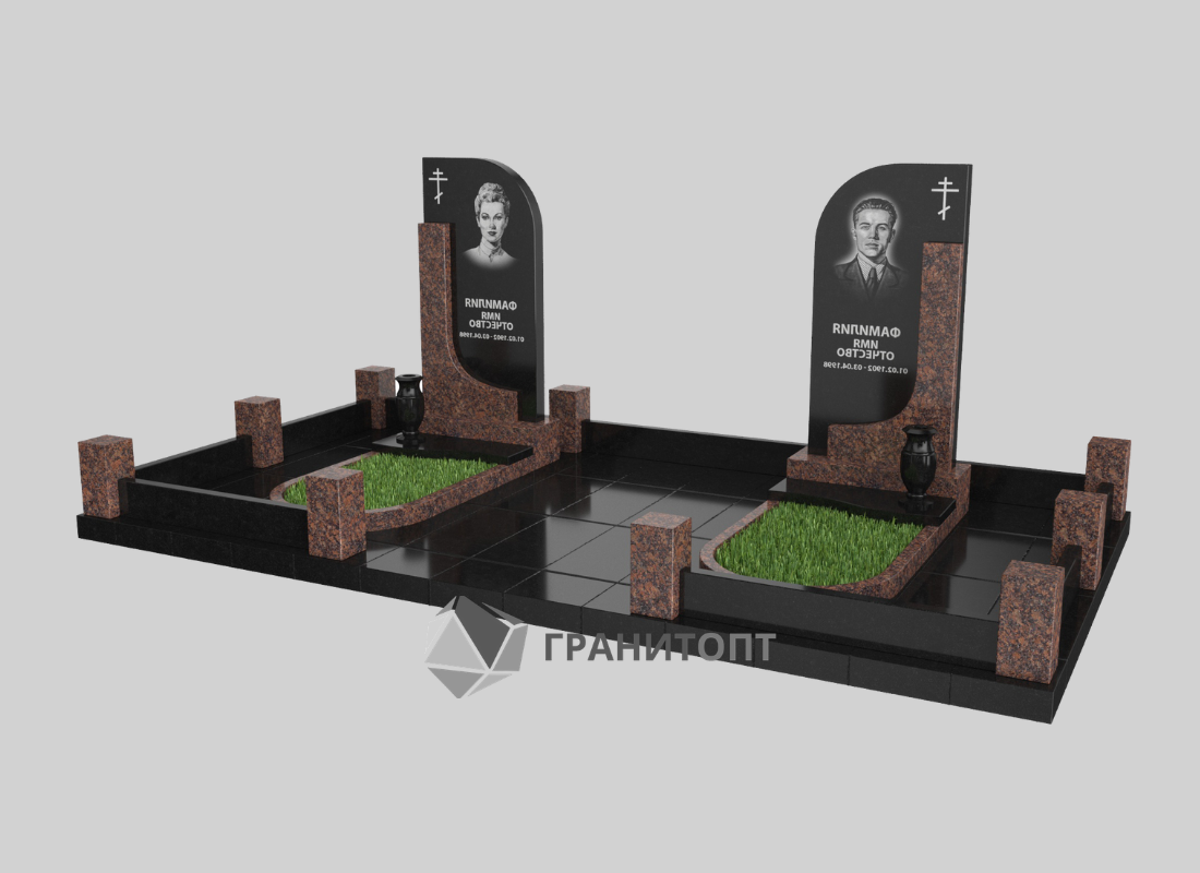 Изящный мемориальный комплекс на двойную могилу с лаконичным сочетанием гранита двух цветов.
