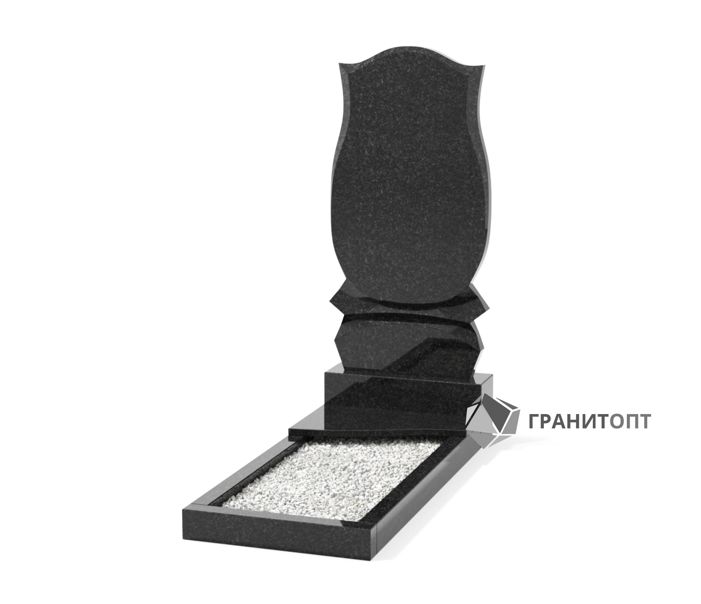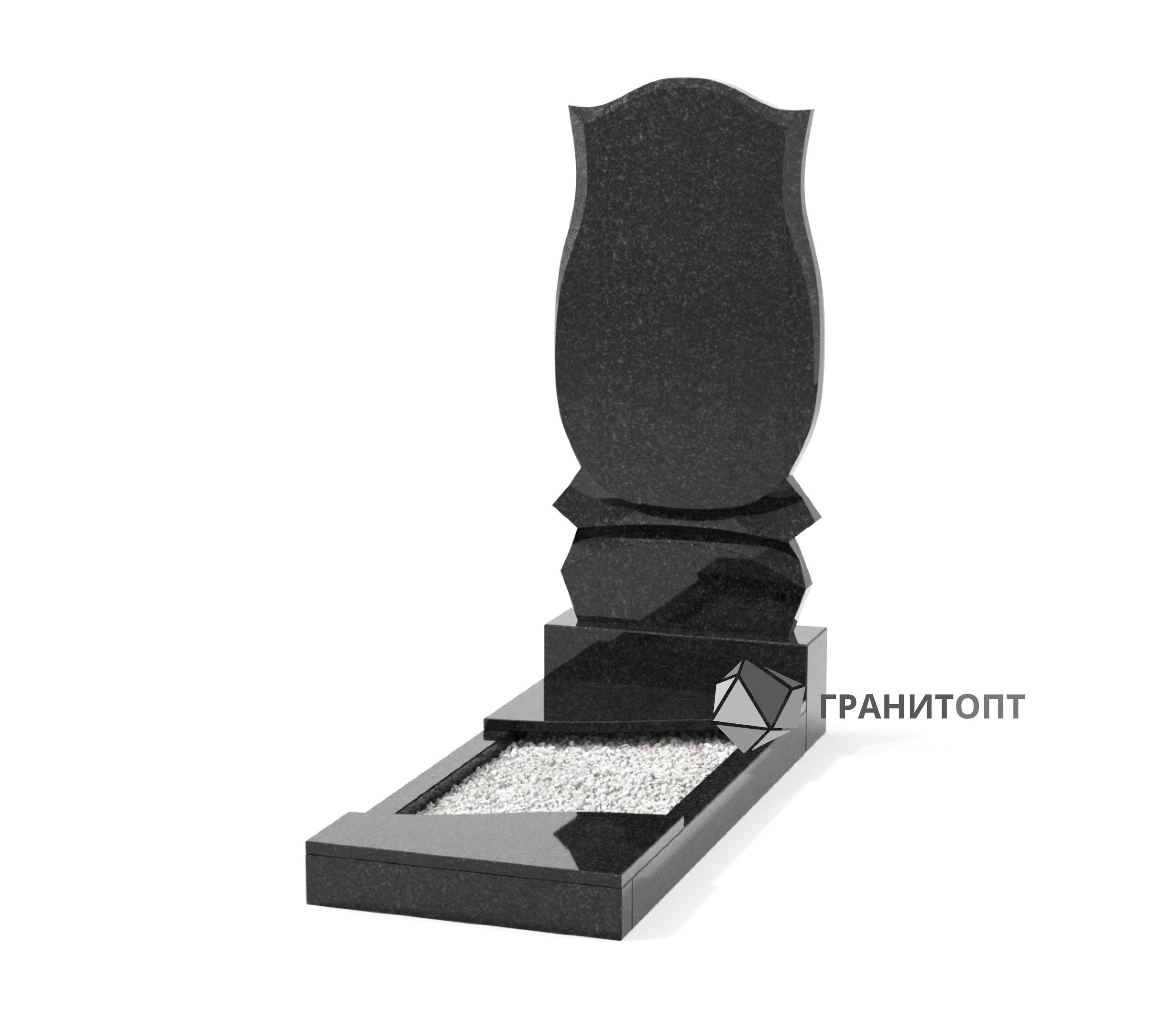 Стела с изящным дизайном. Волна в верхней части памятника смягчает линии контура.