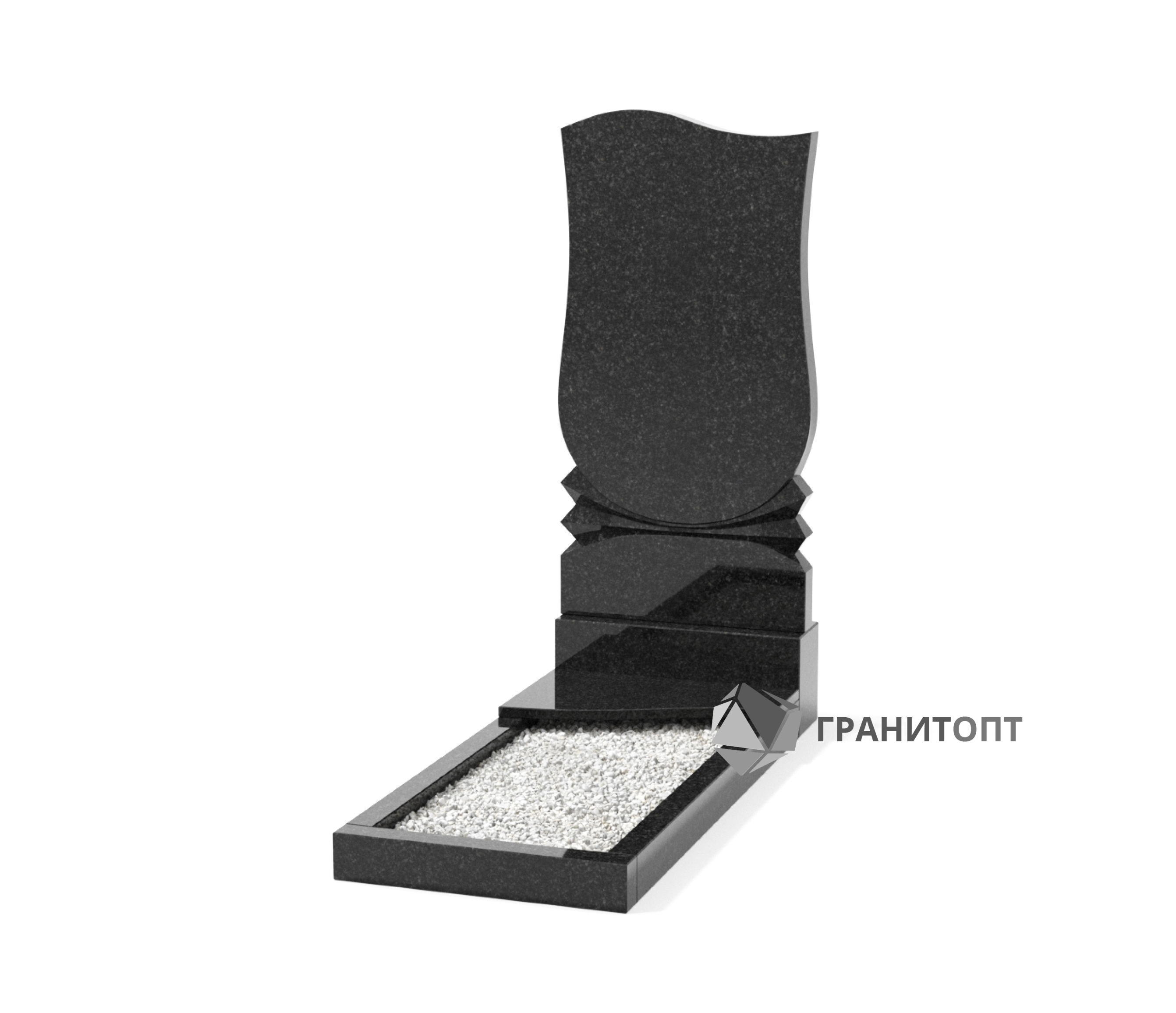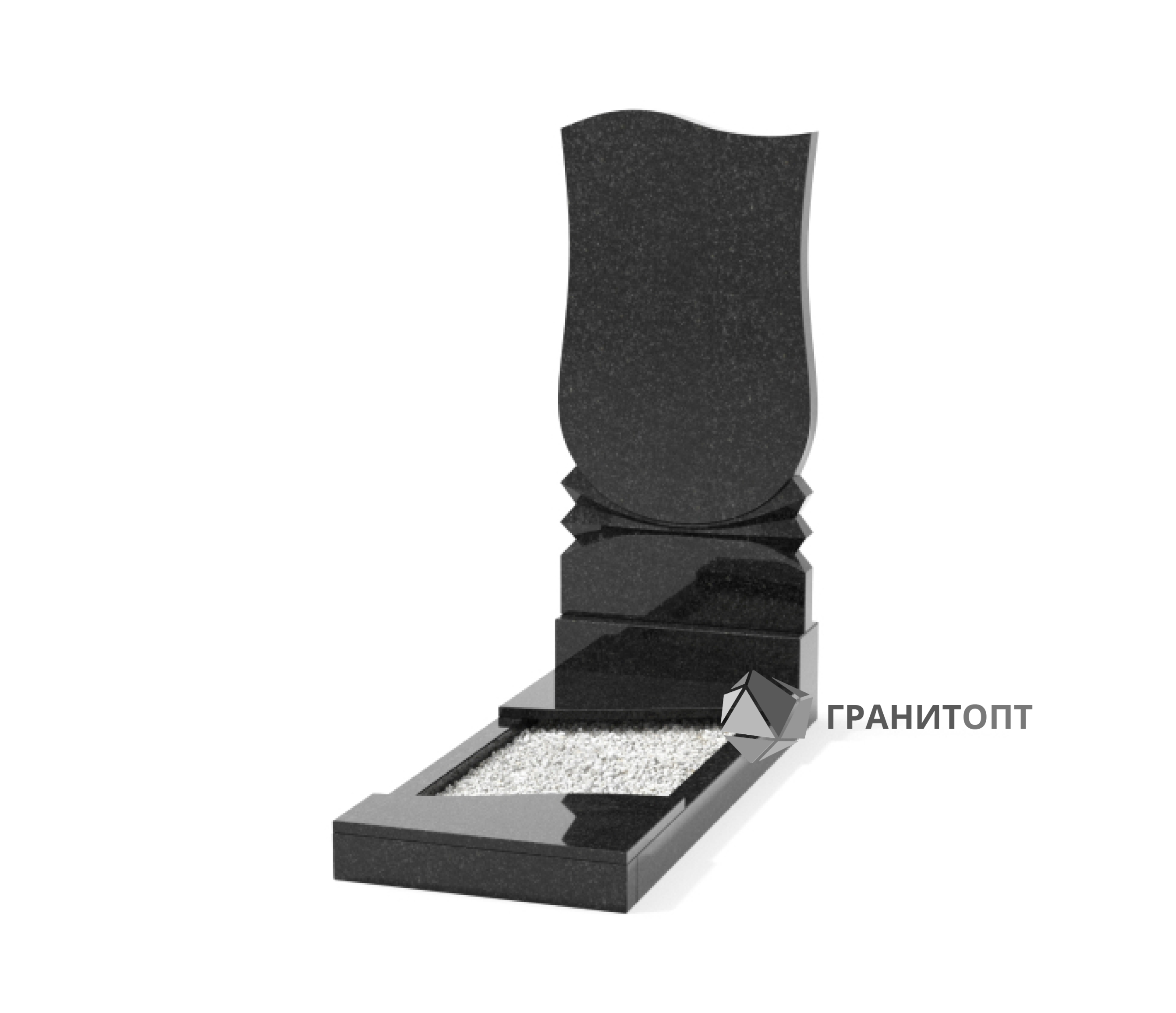 Одиночный вертикальный памятник. В качестве оформления стелы можно использовать изображение, данные умершего, слова памяти, а также гравированные или накладные бронзовые цветы. Обратную сторону памятника можно оформить гравированной иконой, пейзажем или большим портретом. В стоимость изделия не включены расходы по художественному оформлению, доставке на кладбище и установке на участок с захоронением.