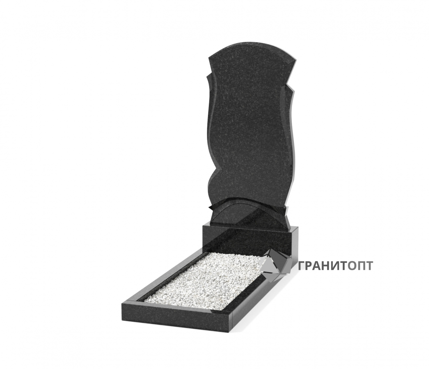 Одиночный вертикальный памятник. В качестве оформления стелы можно использовать изображение, данные умершего, слова памяти, а также гравированные или накладные бронзовые цветы. Обратную сторону памятника можно оформить гравированной иконой, пейзажем или большим портретом. В стоимость изделия не включены расходы по художественному оформлению, доставке на кладбище и установке на участок с захоронением.
